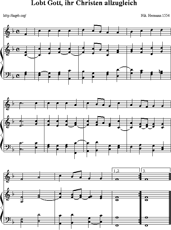 In niemands herz man sehen kann, an werken wird erkannt ein mann... In niemands herz man sehen kann, an werken wird erkannt ein mann. Ein wahrer glaube gotts zorn stillt, daraus ein schönes brünnlein quillt, die brüderliche lieb genannt, daran ein christ recht wird erkannt. Christus sie selbst das zeichen nennt, daran man seine jünger kennt; In niemands herz man sehen kann, an werken wird erkannt ein mann.